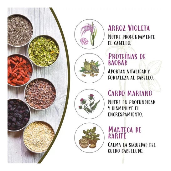 Il contient également du beurre de karité, du baobab et du chardon marie, qui nourrissent intensément les cheveux pour une grande douceur et une grande brillance.