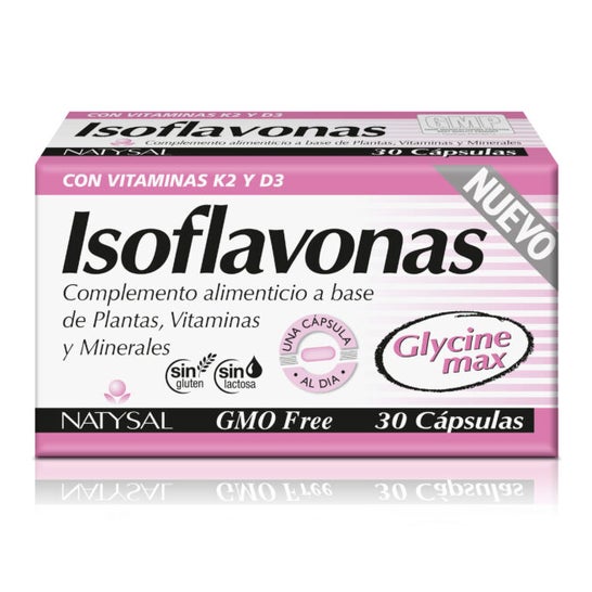 Agent de charge isomalt, extrait sec de graines de soja (Glycine max. (L.) Merr.) avec 40 % d'isoflavones totales (22 % de daidzéine, 8 % de génistéine, 6 % de daidzine, 2 % de glycitine, 1,6 % de génistine, 0,4 % de glycitine), agent de charge glucose anhydre, vitamine C (acide L-ascorbique), niacine (nicotinamide), vitamine E (acétate de D-alpha-tocophéryl), acide pantothénique (pantothénate de D-calcium), stéarate de magnésium, agent de charge : cellulose microcristalline, vitamine B6 (chlorhydrate de pyridoxine), vitamine B2 (riboflavine), vitamine B1 (mononitrate de thiamine), acide folique (acide teroylmonoglutamique), sélénium (sélénite de sodium), biotine (D-biotine), vitamine K (ménaquinone-7 ou K2), vitamine D (cholécalciférol ou D3), vitamine B12 (cyanocobalamine). Enveloppe de la gélule : gélatine, colorants : dioxyde de titane et oxyde de fer rouge.