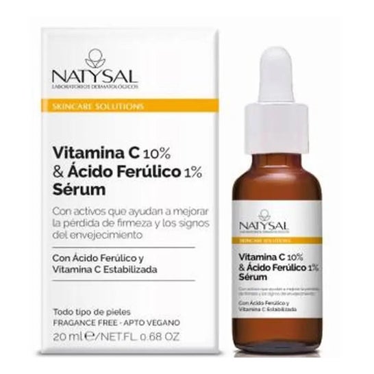 Sérum formulé avec de la vitamine C et de l'acide férulique, des produits actifs qui aident à améliorer la perte de fermeté et les signes du vieillissement.