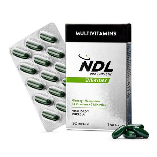 NDL Pro-Health Multivitamins 30caps est un complément alimentaire pour Rafa Nadal formulé avec des vitamines et des minéraux, contenant des vitamines C, B2, B5, B6 et B12 et des minéraux tels que le magnésium et le fer pour aider à combattre la fatigue, ainsi que de l'iode, de la thiamine, de la niacine et du manganèse, qui soutiennent le métabolisme énergétique normal, et de la vitamine D, qui favorise le maintien de la masse musculaire.