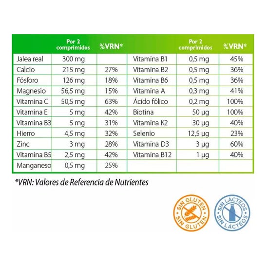 Neo Multivit Forte Junior 120comp est un complément alimentaire enrichi en gelée royale qui contribue à apporter énergie et vitalité. Il aide également à lutter contre la fatigue grâce à sa combinaison de vitamines et de minéraux. Il est également particulièrement utile lors des changements de saison, car il aide à stimuler l'organisme et à lui apporter vitalité et énergie. Contient 120 comprimés.