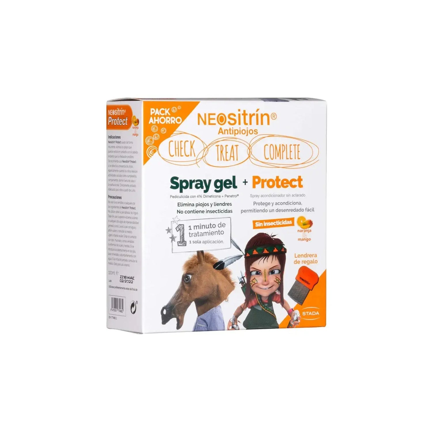 Neositrin Pack Spray Gel 60ml + Protect Après-shampooing 100ml est un pack de soin capillaire qui comprend un gel en spray et un après-shampooing.