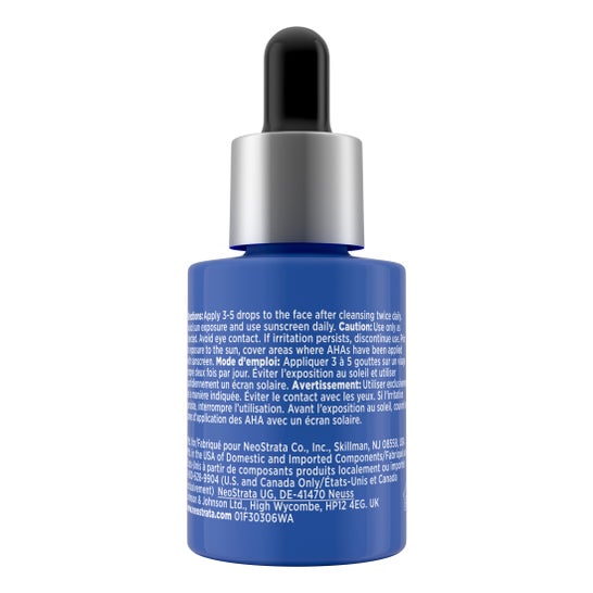 Avertissement de coups de soleil : ce produit contient un acide alpha-hydroxylé (AHA) qui peut augmenter la sensibilité de la peau au soleil et, en particulier, accroître la possibilité de coups de soleil. Utilise un écran solaire et limite l'exposition au soleil pendant l'utilisation de ce produit et pendant une semaine après. Précaution : uniquement pour usage externe. Utiliser uniquement comme indiqué. Éviter le contact avec les yeux. Si l'irritation persiste, cesse d'utiliser et consulte un médecin. Avant l'exposition au soleil, il est recommandé d'utiliser une protection solaire sur les zones où le produit a été appliqué.