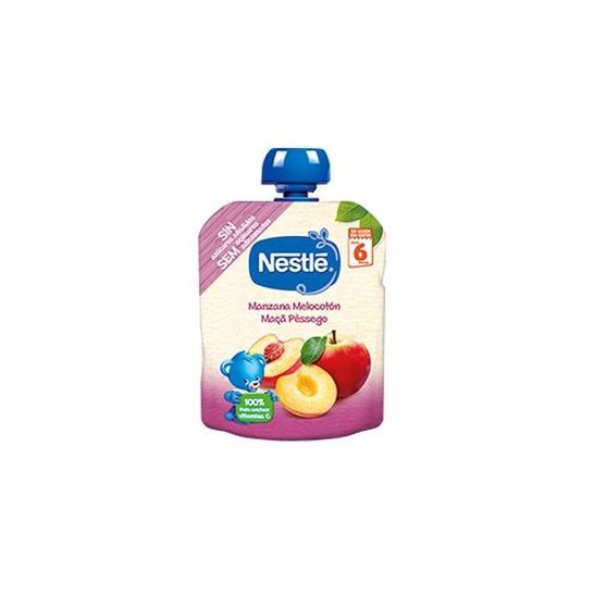 Nestlé Jus Pomme Pêche +6M Sachet de 90g de pomme et de pêche pour les bébés à partir de 6 mois. convient pour une alimentation équilibrée. améliore l'introduction des aliments dans le régime des petits car il diversifie leur alimentation. ne contient pas de sucres ajoutés, d'épaississants ni d'huile de palme. recommandé à prendre au goûter ou en dessert.