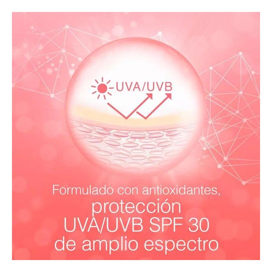 Neutrogena Bight Boost Fluide Hydratant Visage SPF30 50ml est un fluide pour le visage qui aide à prévenir le vieillissement prématuré de la peau, grâce à sa formule enrichie en vitamine C et E. Il contient également une protection à large spectre UVA et UVB SPF30, qui contribue à protéger la peau contre l'action néfaste des rayons du soleil. Ce fluide est enrichi en néoglucosamine, un ingrédient actif qui aide à stimuler le renouvellement des cellules de la peau pour un effet lumineux. Formule légère convenant à tous les types de peaux.