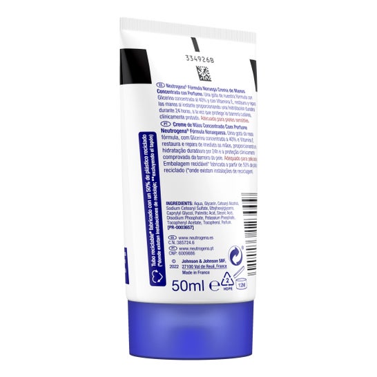 Neutrogena® Crème Mains Concentrée Parfumée 50ml est une crème pour les mains qui aide à hydrater et apaiser les mains les plus sèches.