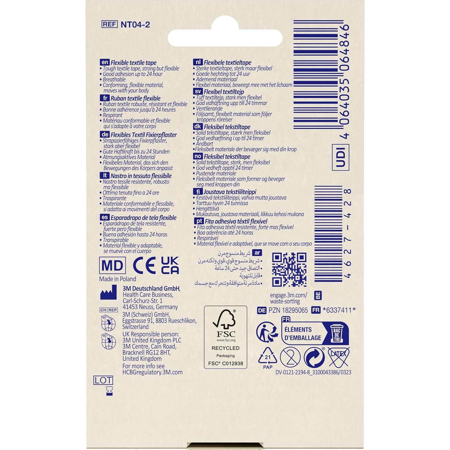 Son matériau flexible et adaptable permet de bouger avec le corps, offrant une confort lors de son utilisation. Ce bandage offre une adhérence robuste qui peut durer jusqu'à 24 heures, garantissant qu'il reste en place sans problème.