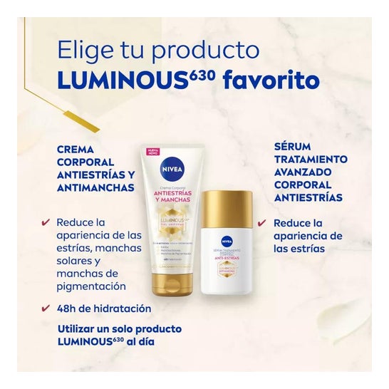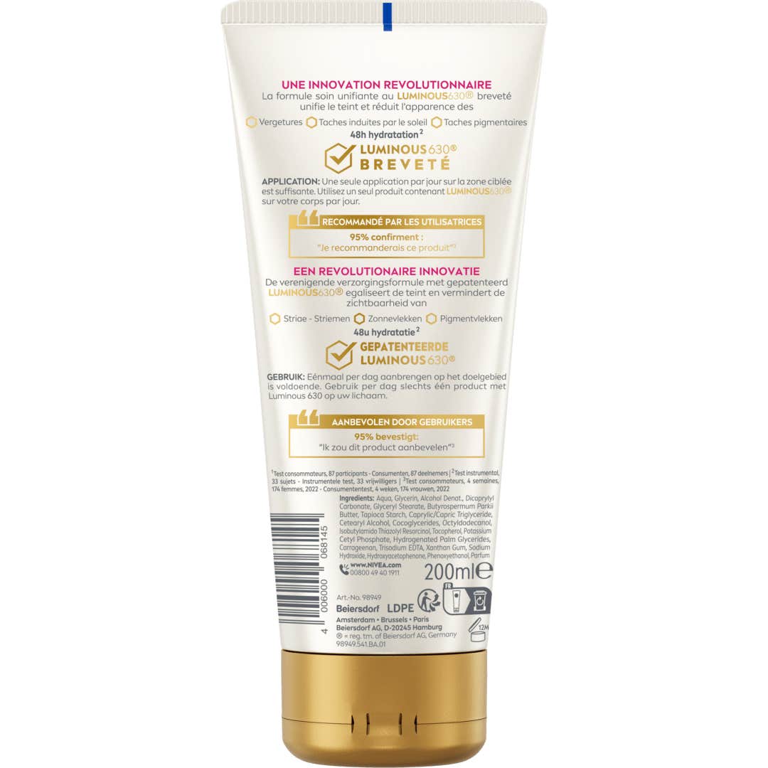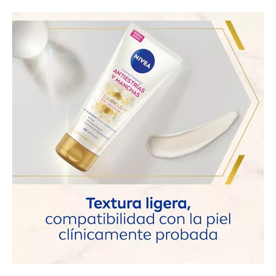 Nivea Luminous 630 Crème Corporelle Anti-Stries et Taches 200ml est un produit conçu pour le soin de la peau. Sa formule se caractérise par une texture légère qui facilite l'application et l'absorption.