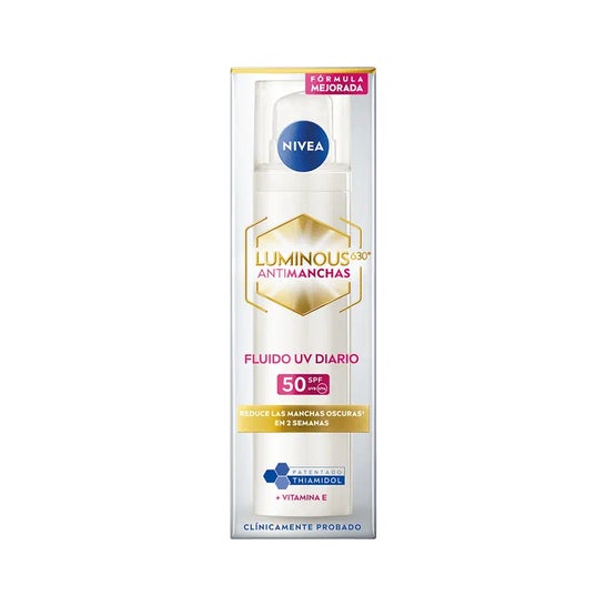 Cette crème de jour Nivea est triple action. Il s'agit d'une solution légère et agréablement texturée qui combine l'ingrédient breveté Anti-blemish Luminous630 avec un facteur de protection solaire élevé (SPF 50). En même temps, il est enrichi en ingrédients activateurs de cellules, en acide hyaluronique et en vitamine E ; il intègre également des filtres UVA et UVB.