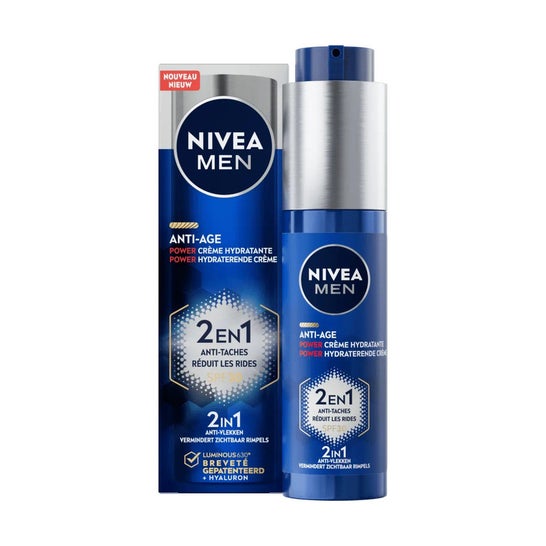 Nivea Men Power Creme Anti-Âge 2 en 1 Spf30 50ml est un hydratant conçu spécifiquement pour le soin masculin. Cette crème combine les bienfaits de l'Acide Hyaluronique avec l'ingrédient innovant anti-taches Luminous630®, ce qui en fait une option efficace pour le soin quotidien de la peau.