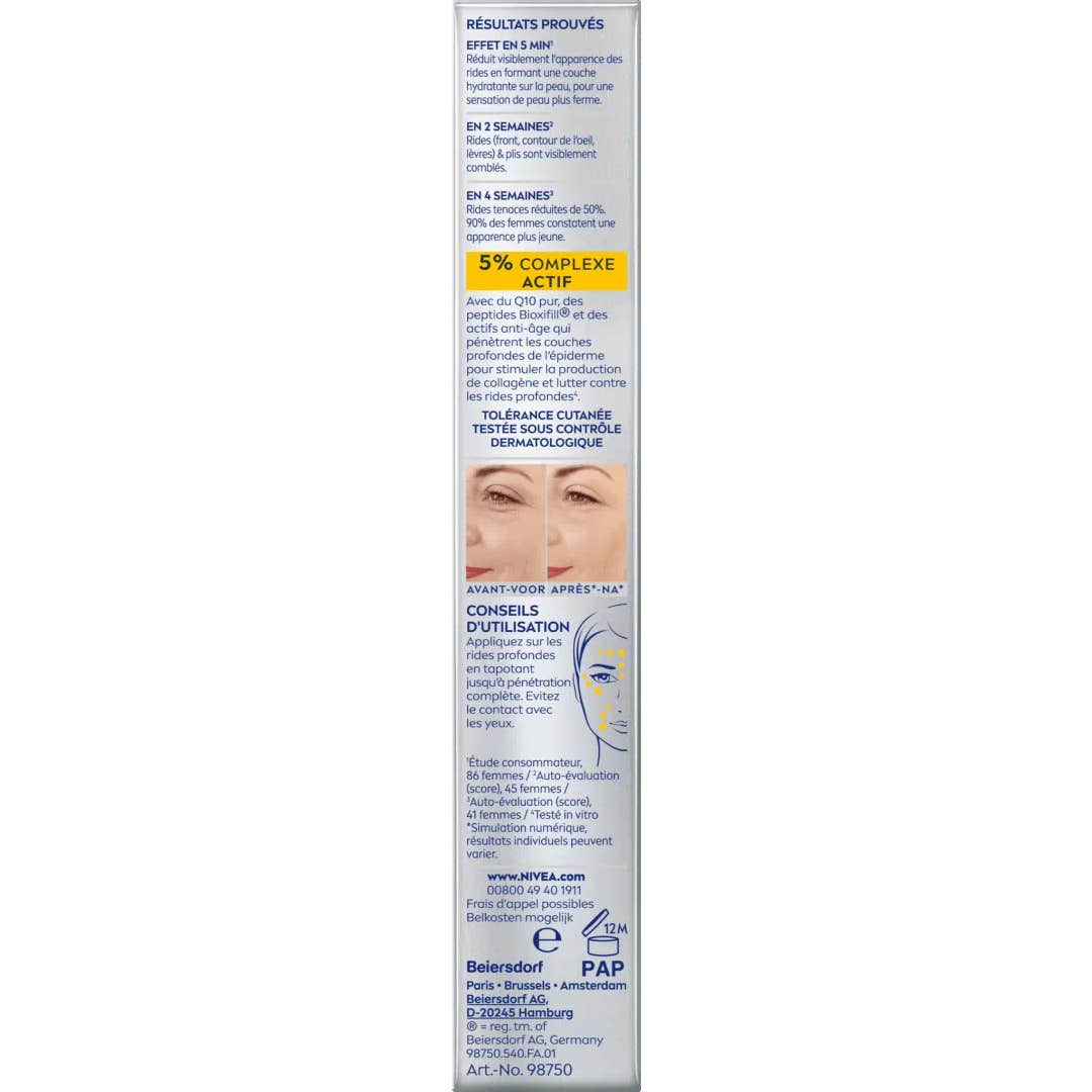Nivea Q10 Power Sérum Anti-rides Remplissage Localisé 15ml est un traitement spécifique qui offre une action efficace contre les rides persistantes. Ce sérum est conçu pour remplir visiblement les ridules et les rides en peu de temps, obtenant des résultats en seulement 5 minutes.