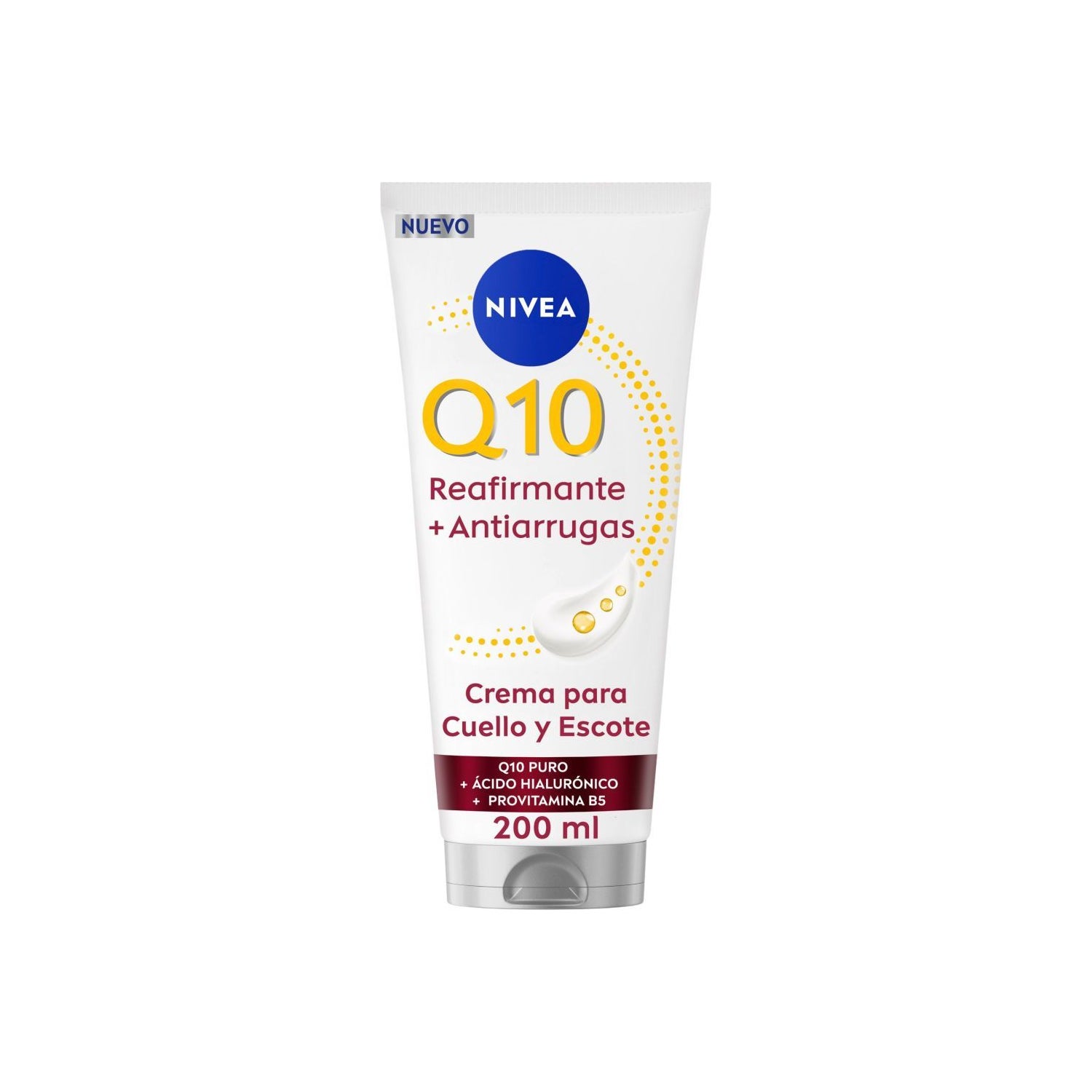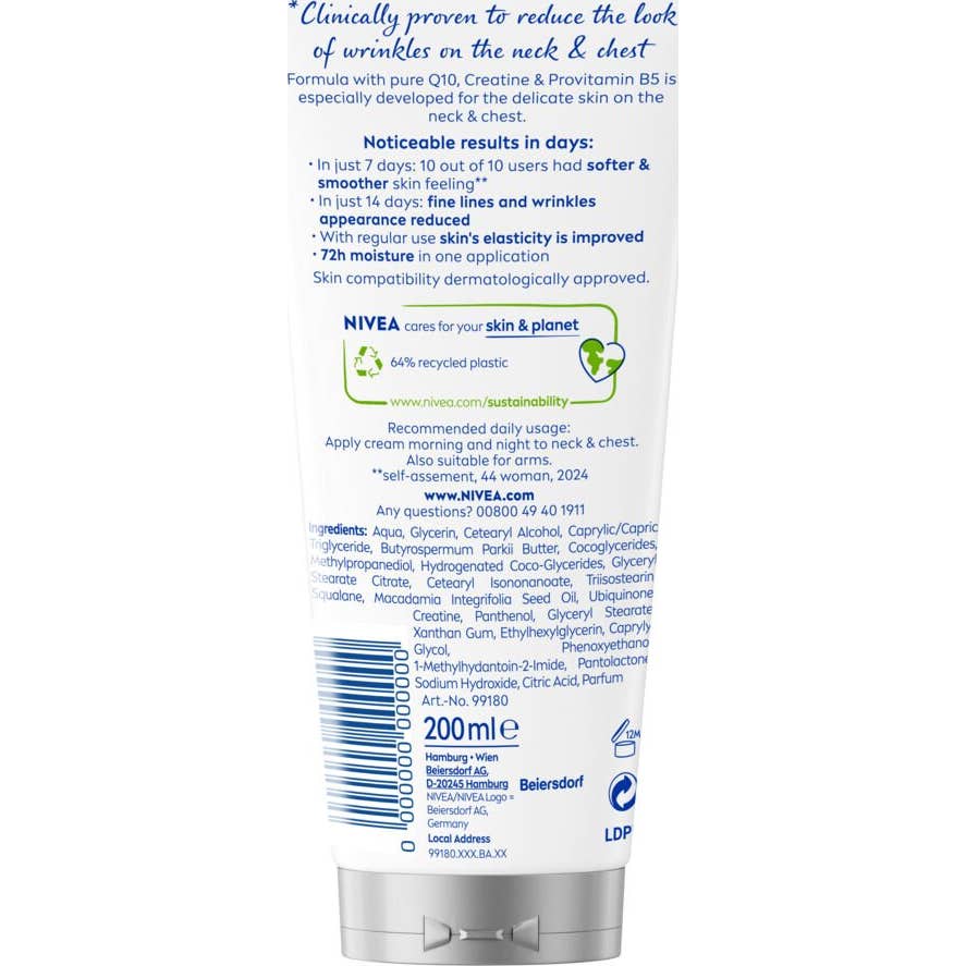 Nivea Q10 Raffermissant + Anti-rides Crème Cou et Décolleté est un produit conçu spécifiquement pour prendre soin de la peau délicate de ces zones. Cette crème, présentée dans un emballage de 200 ml, est enrichie en :