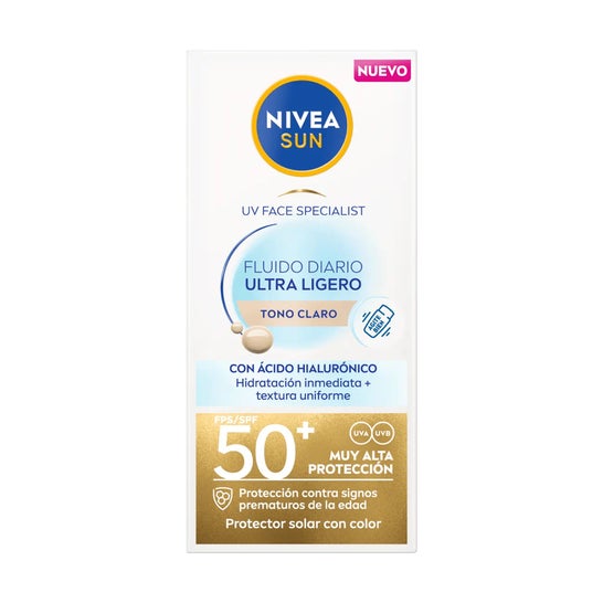 Nivea Sun Fluide Quotidien Ultra Léger Teint Clair Spf50+ 40ml est un écran solaire facial conçu pour offrir une protection efficace contre les rayons UVA et UVB. Sa formule ultra légère et teintée permet une application simple et rapide, étant adaptée à tous les types de peau, même à celles qui sont plus sensibles.