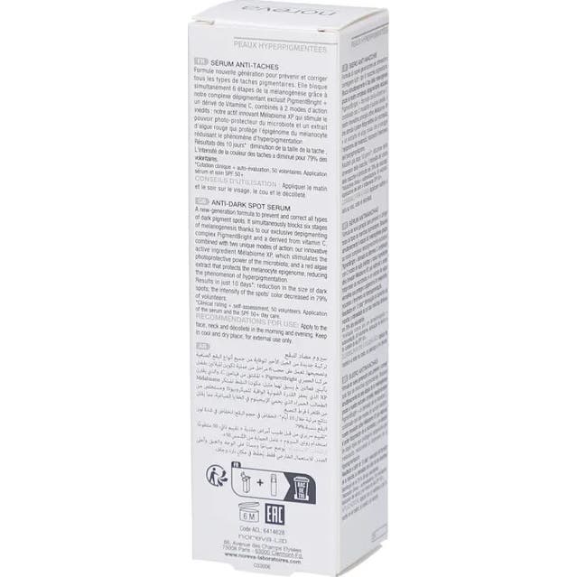 De plus, il incorpore le complexe Pigmentbright®, qui combine six puissants actifs dépigmentants avec de la vitamine C stabilisée, contribuant ainsi à :