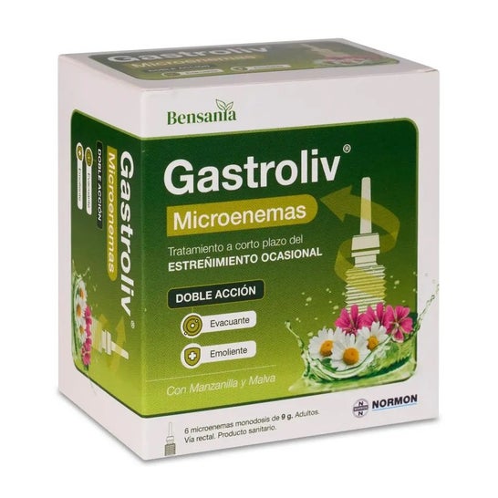 Normon Bensania Gastroliv Microenemas 6 uds sont des microenemas conçus pour fournir une action locale qui facilite une évacuation douce. Ces microenemas sont utiles pour aider à soulager la constipation occasionnelle, tout en prenant soin de la muqueuse rectale.