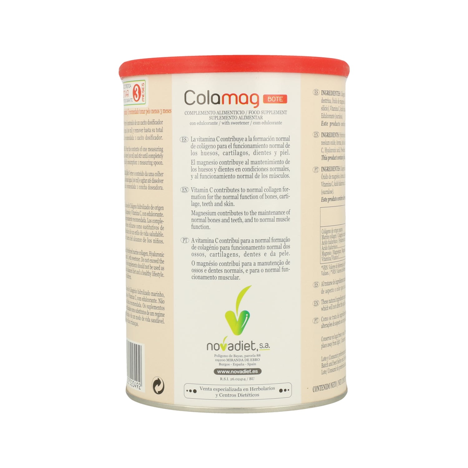 Novadiet Colamag 300g est un complément alimentaire à base de collagène marin, d'acide hyaluronique, de magnésium et de vitamine C qui aident au bon maintien des articulations et de la peau.