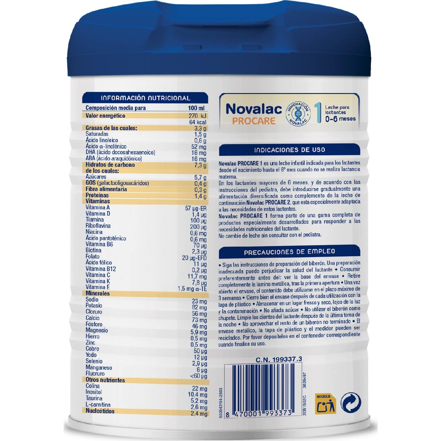 Novalac Procare 1 2x800g (anciennement Novalac Premium Proactive 1) est un lait de croissance pour les 0 à 6 mois.