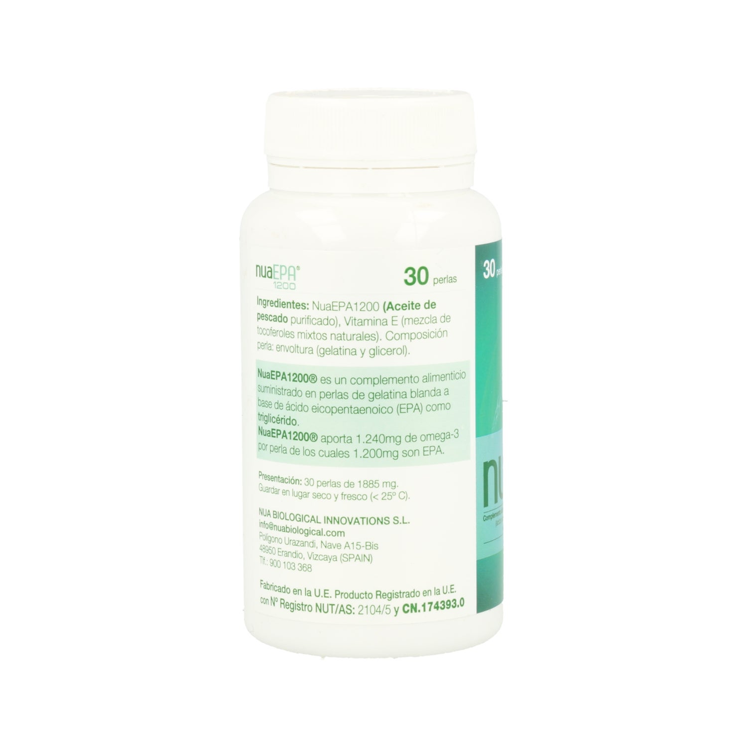 Nuaepa 1200 est formulé à base d'huile de poisson purifiée qui offre une source riche en EPA, vitamine E, gélatine et glycérol, entre autres ;