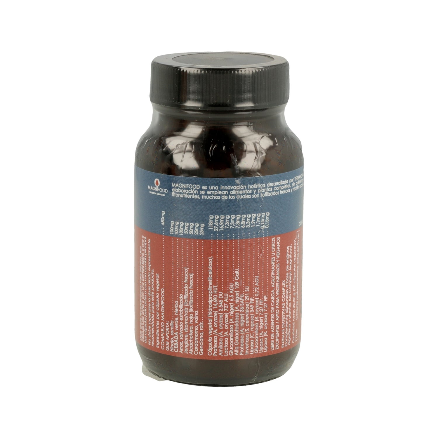 Complément alimentaire à base d'enzymes digestives et de plantes du complexe magnifood. Formulé avec des extraits de plantes comme les graines de fenouil, l'orge verte, le riz, le gingembre, l'artichaut et la cardamome. Il agit comme un allié de la digestion, est utile en cas d'indigestion ou de digestion lourde et aide à soulager les spasmes gastro-intestinaux. Ses propriétés enzymatiques aident au bon fonctionnement du microbiote. Avec des propriétés anti-inflammatoires et détoxifiantes.