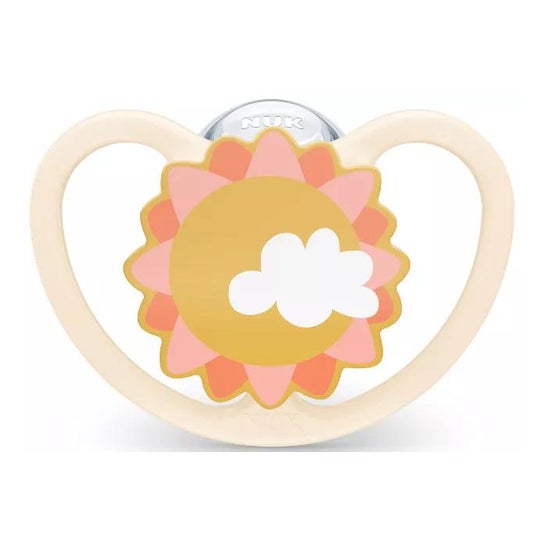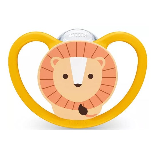 La Nuk Space Sucette Lion/Soleil est conçue pour les bébés âgés de 6 à 18 mois. Ce produit comprend deux sucettes, caractérisées par :