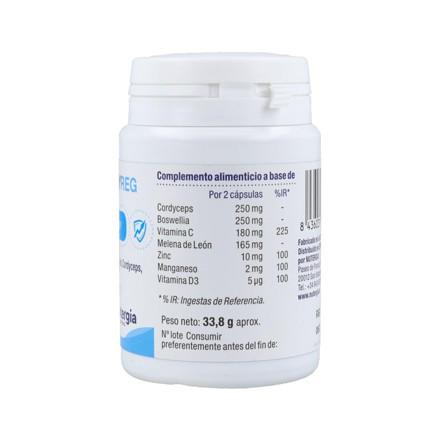 Sa formule, composée principalement de crinière de lion, de cordyceps et de boswellia serrata entre autres, aide à moduler le système immunitaire, ainsi qu'à régénérer la muqueuse intestinale, améliorant et renforçant l'intestin contre les intolérances alimentaires, la dermatite atopique et la rhinite allergique,