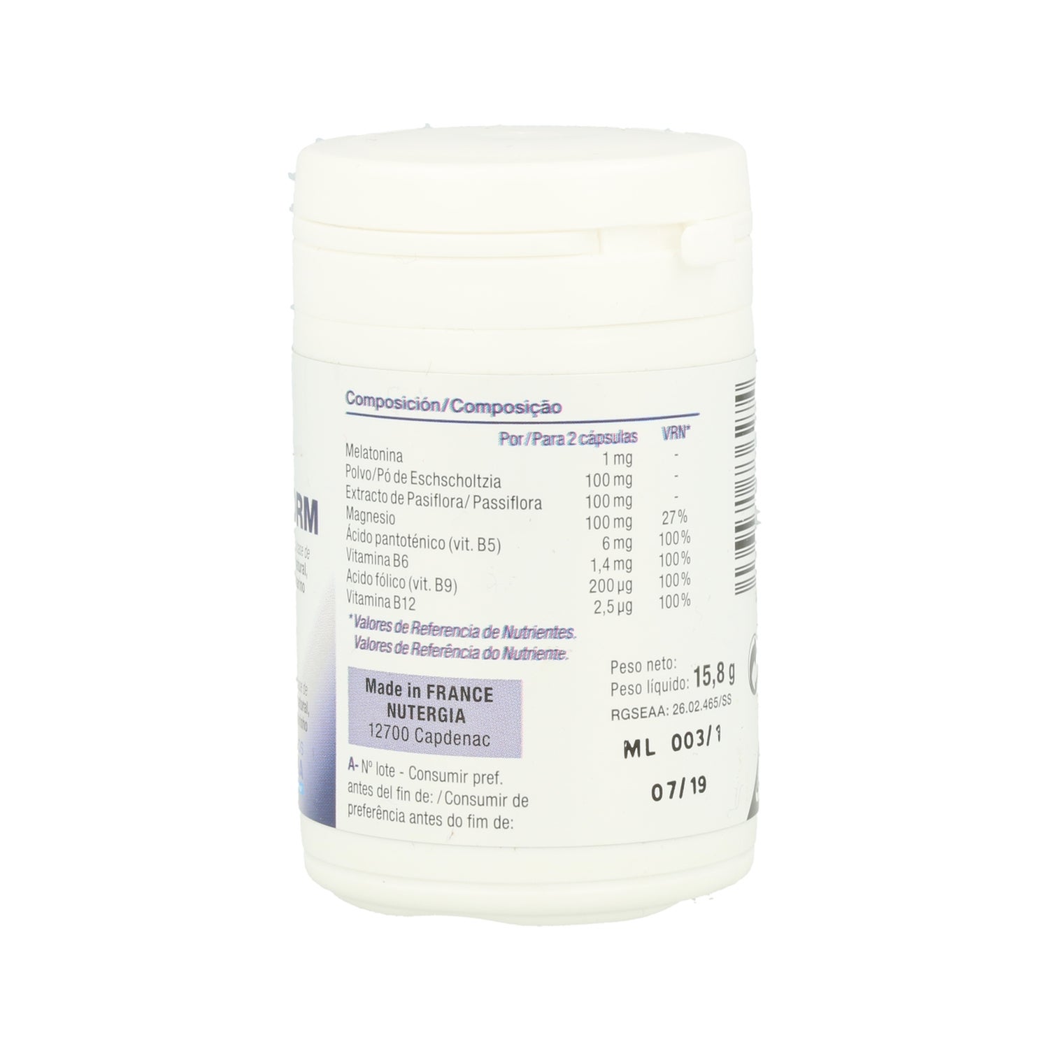 Acide folique (200 μg), magnésium (100 mg), extrait de passiflore (100 mg), poudre de schscholtzia (100 mg), acide pantothénique (6 mg), vitamine B12 (2,5 μg), vitamine B6 (1,4 mg), mélatonine (1 mg), magnésium marin, lécithine de soja, oxyde de fer, poudre de cerise, gélatine de poisson, phosphate dicalcique.
