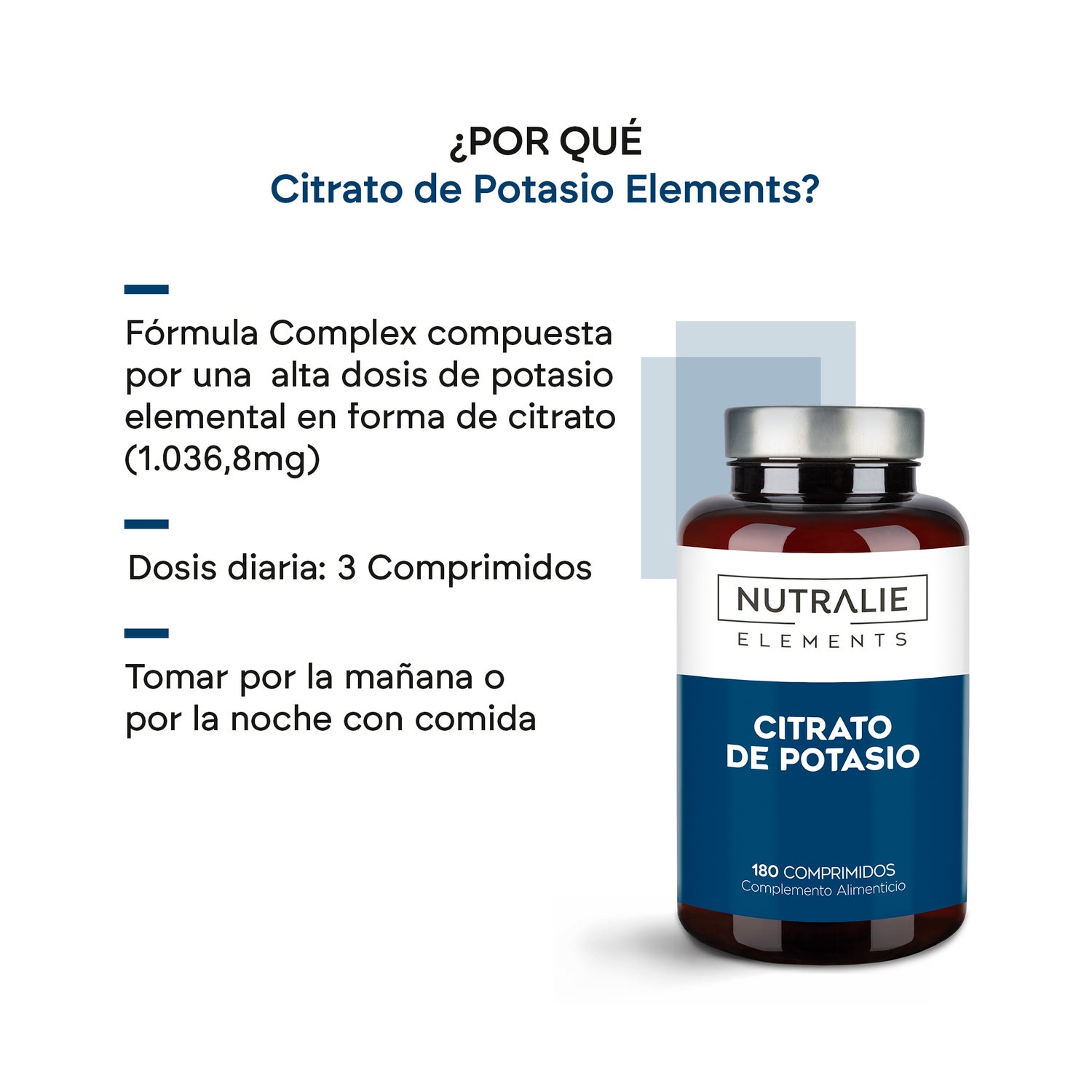 Formulé avec une forte dose de Potassium élémentaire (1.036,8 mg).