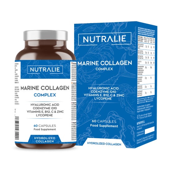 Nutralie Complex de Collagène Marin + Acide Hyaluronique + Q10 60caps est un complément alimentaire formulé avec du collagène hydrolysé, de l'acide hyaluronique et de la vitamine C.