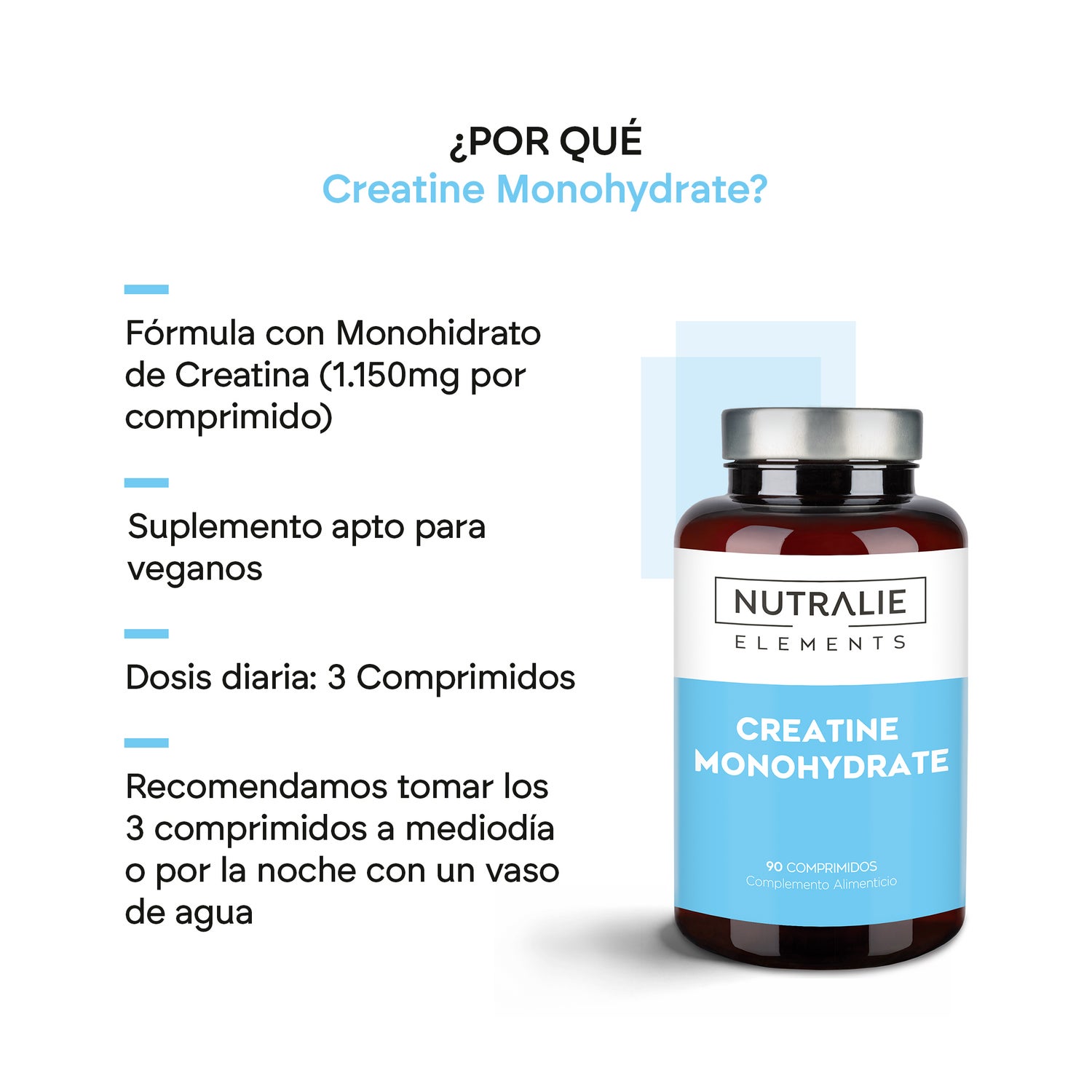 La Créatine Elements de Nutralie est un complément alimentaire formulé à base de 6900 mg de Créatine Monohydratée dont 6000 mg sont de créatine. Il est conçu pour améliorer l'effet de l'entraînement tant chez les sportifs plus expérimentés que chez les amateurs, car la créatine améliore la performance physique lors de séries successives d'exercices courts de haute intensité. La dose quotidienne est de 3 comprimés par jour avec de l'eau et, dans le cas des sportifs, il est possible de prendre jusqu'à 6 comprimés par jour. Il est recommandé de les prendre à midi ou le soir. Déclarations nutritionnelles soutenues par l'EFSA (Autorité Européenne de Sécurité Alimentaire).