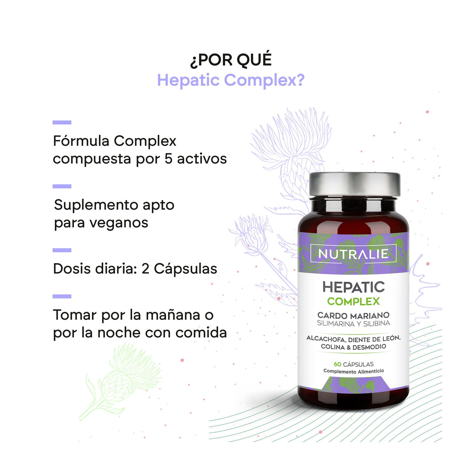 Nutralie Hepatic Complex avec Chardon-Marie + Artichaut + Pissenlit 60caps est un complément alimentaire formulé avec le complexe de Chardon-Marie renforcé avec Pissenlit, Artichaut Silimarine et Desmodium.