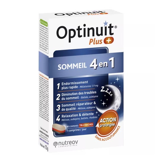 Nutreov Optinuit Plus Triple Action 30 Comprimés est un complément alimentaire sous la forme de comprimé tri-couches à action prolongée, spécialement conçu pour améliorer l’endormissement et favoriser un sommeil réparateur tout au long de la nuit.