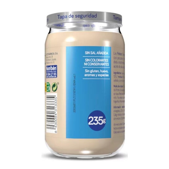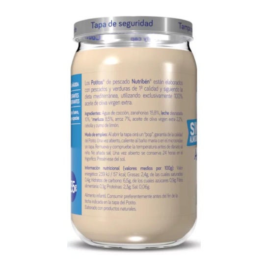 Eau de cuisson, Carottes 15,8%, Lait écrémé 10%, Merlu 8,5%, Riz 7%, Huile d'olive extra vierge 2,2%, Oignon, Jus de citron.
