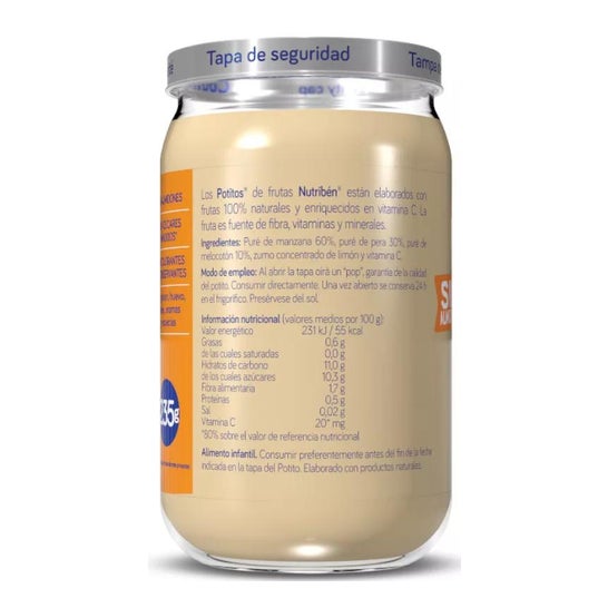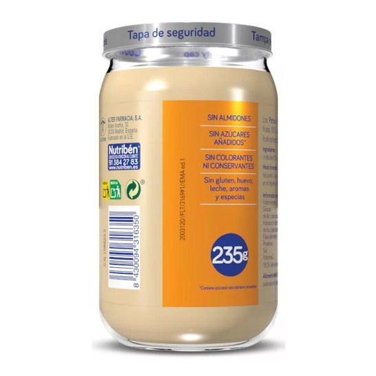 Nutriben Potito Assorted Fruits 235gr est composé de pommes, de poires et de pêches. Sans amidon. Pour les bébés à partir de 6 mois, dans le cadre d'une alimentation équilibrée. Ne contient pas de gluten, d'œuf ou de lait. Sans arômes ni épices.