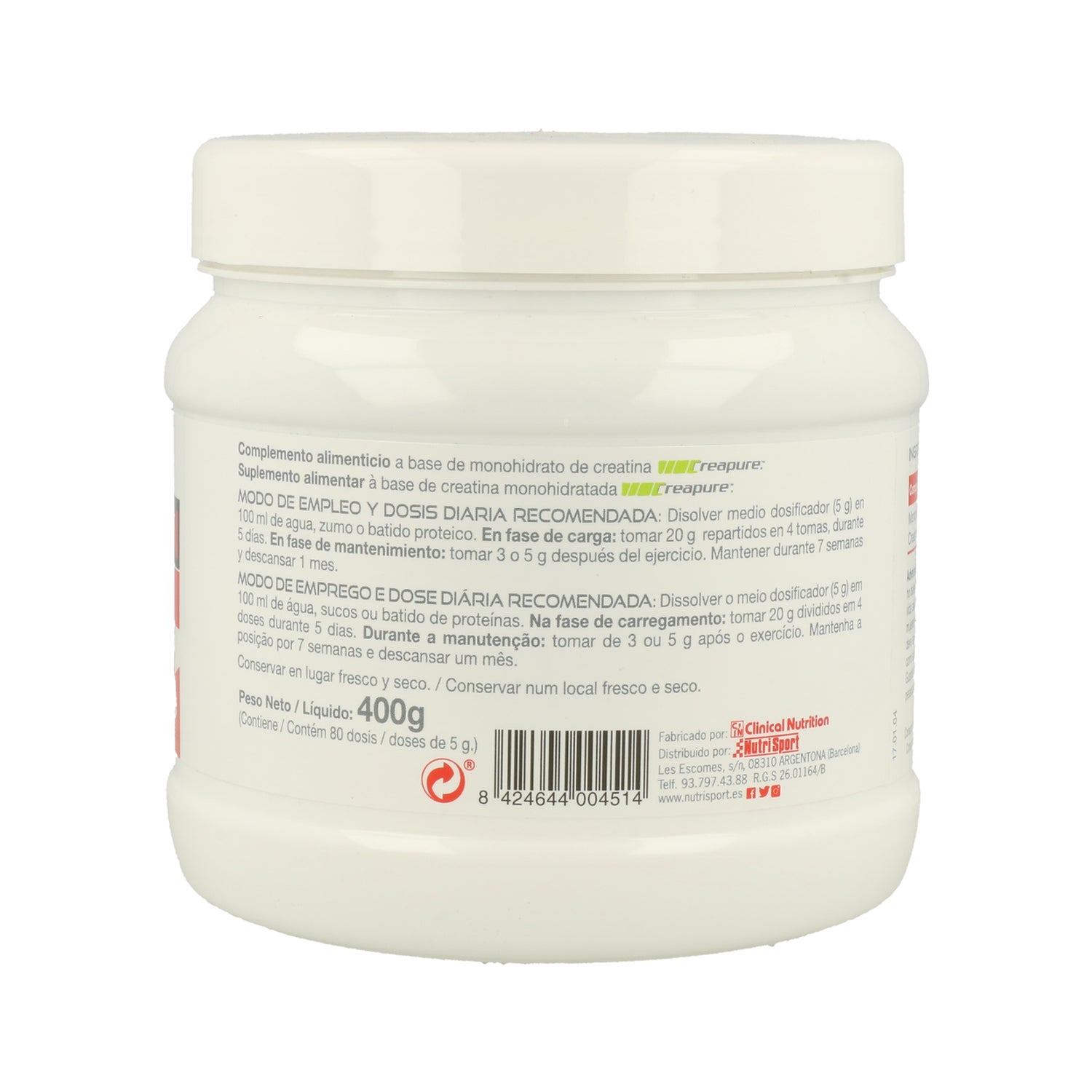 NutriSport Creatina Monohidrato 400g est un complément alimentaire à base de créatine monohydrate CN Creapure TM, afin de favoriser le gain de masse musculaire. La créatine intervient dans les processus métaboliques au niveau musculaire.