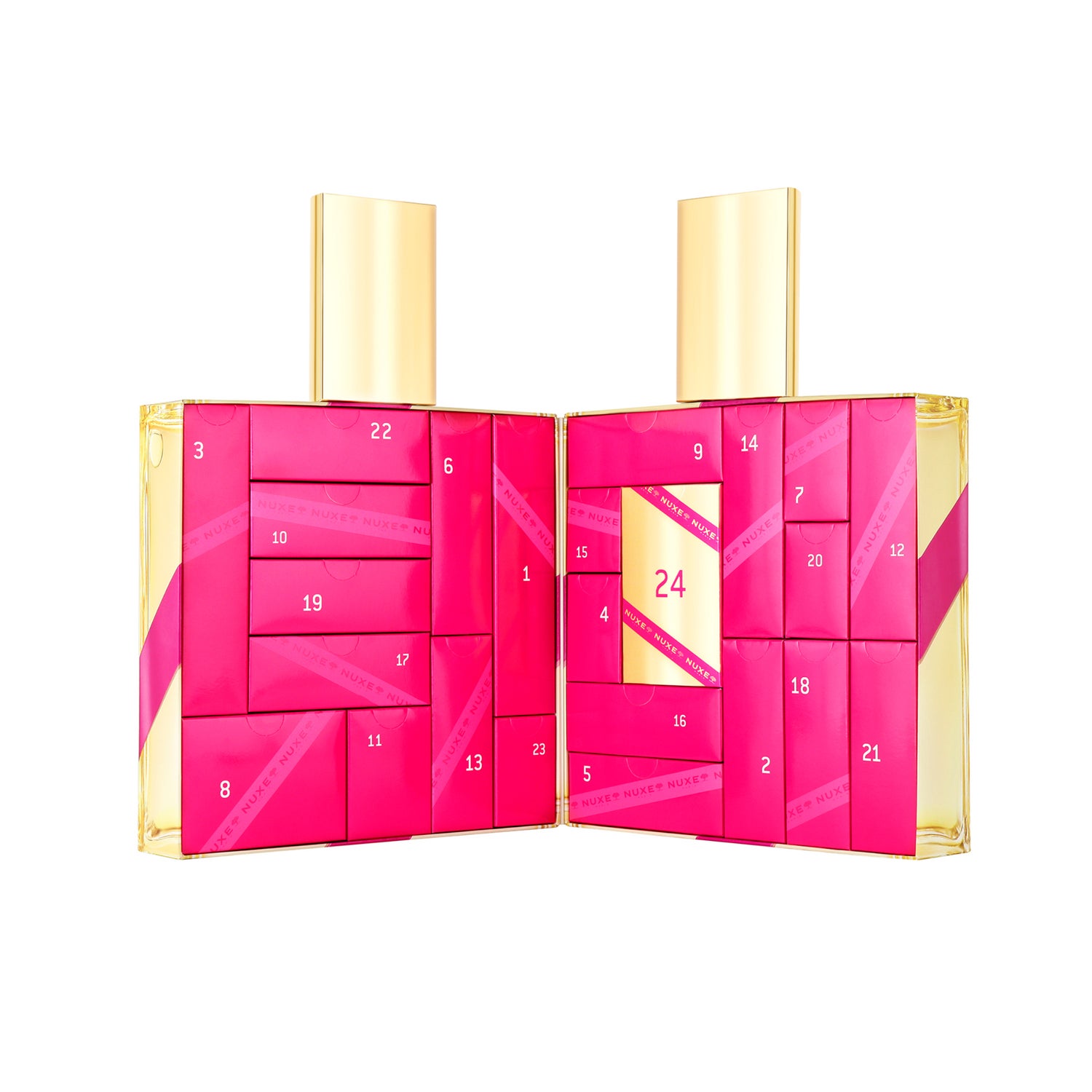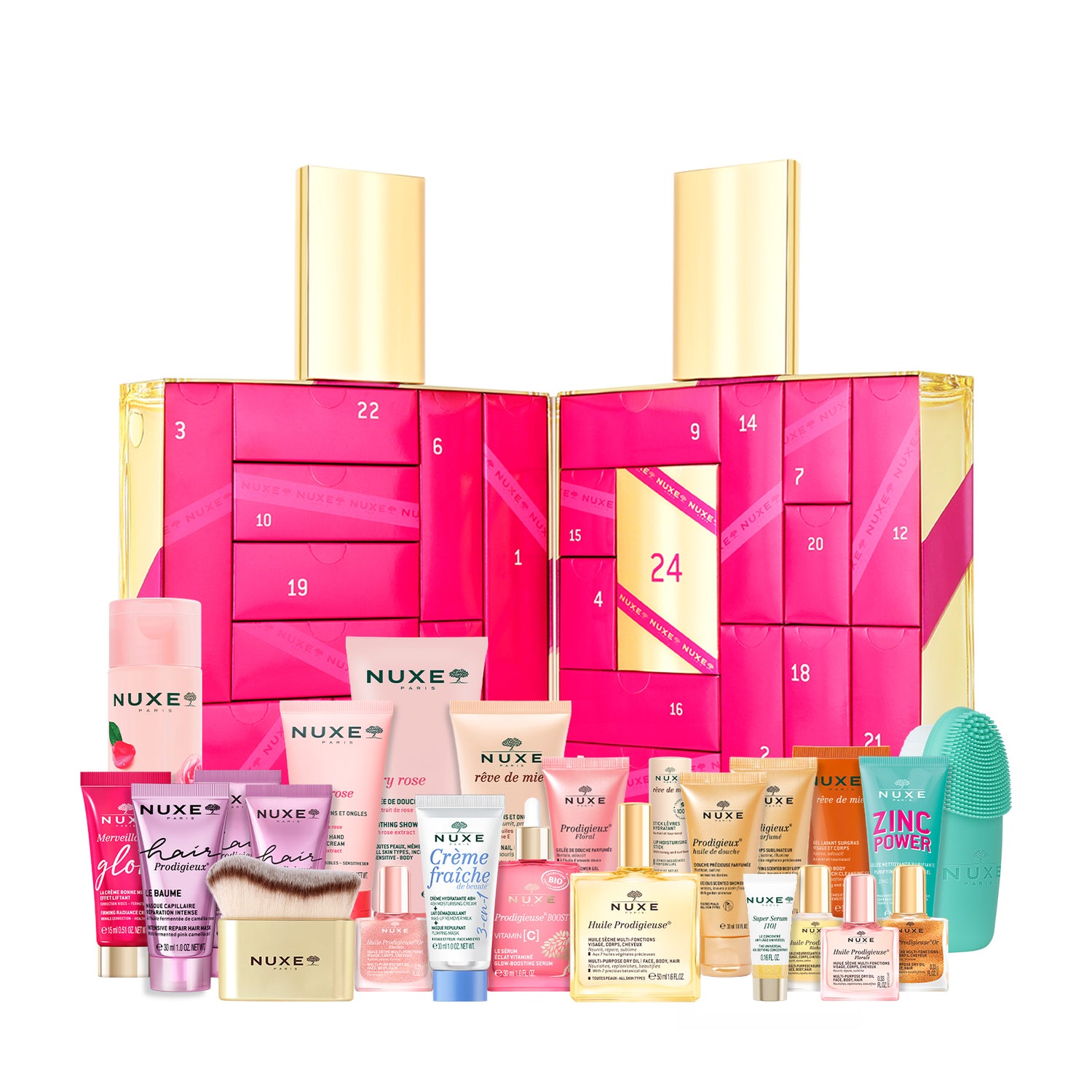 Laissez-vous séduire par notre calendrier de l’Avent XXL, imaginé comme un flacon géant d’Huile Prodigieuse® renfermant 24 surprises beauté.