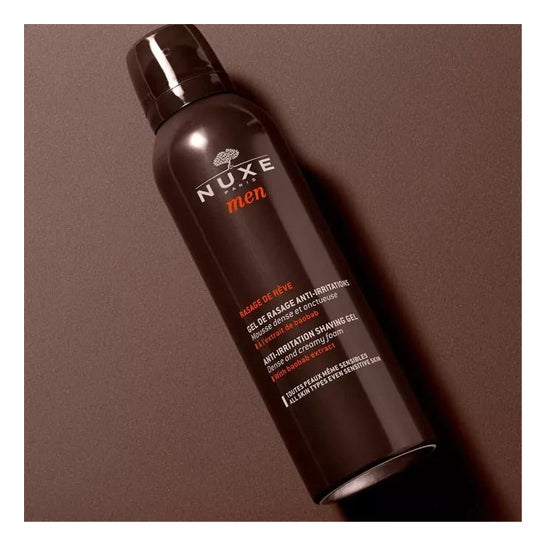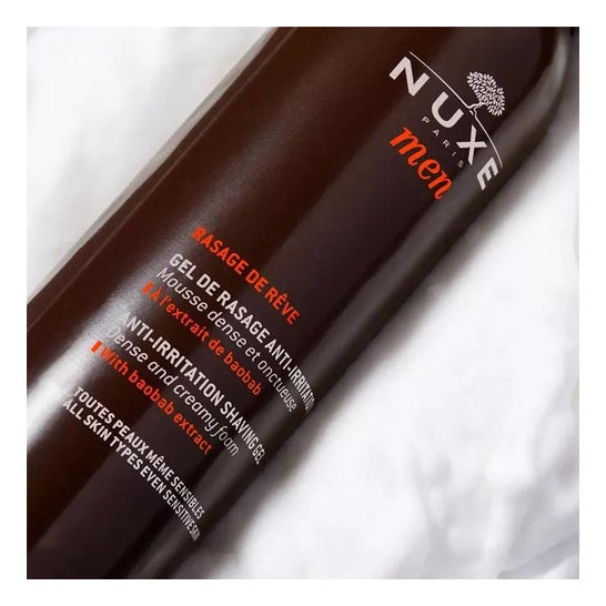 Nuxe Men Rasage de rêve est un gel de rasage Anti-irritations à l'extrait de Bois de Santal, permet un rasage facile et précis sans irritations.Mousse dense et onctueuse.