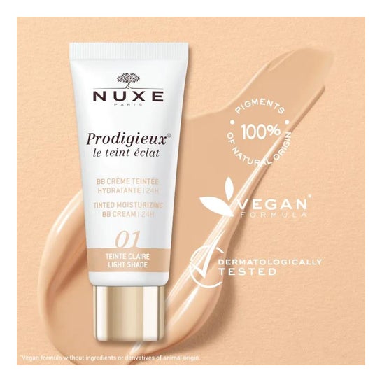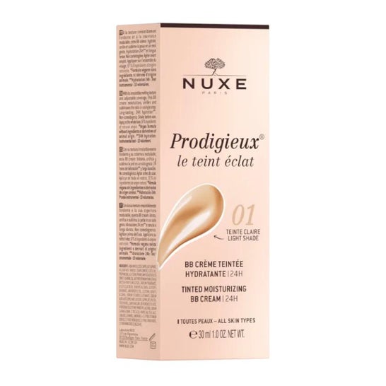 Nuxe Prodigieux Le Teint Éclat BB Crème Teintée Hydratante Teinte Claire 30ml est un soin perfecteur de teint qui unifie la peau en un seul geste tout en l'hydratant pendant 24h.