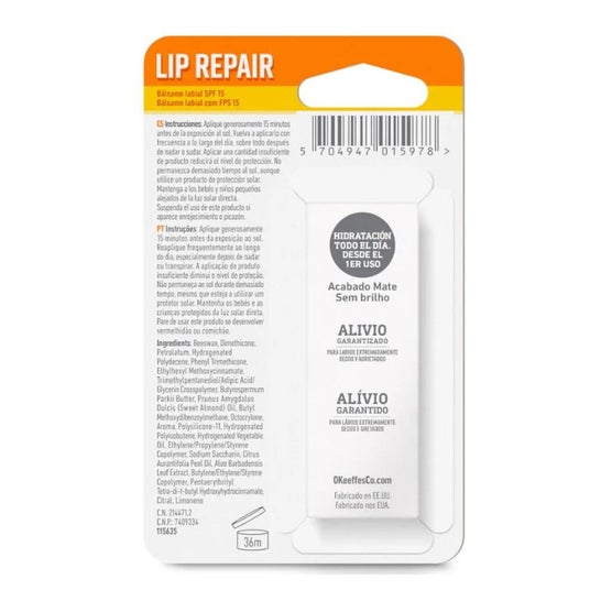 O'Keeffe'S Lip Repair Spf15 4.2g est le compagnon idéal pour ceux qui ont besoin d'une hydratation intense et d'une protection solaire quotidienne pour les lèvres sèches. Sa formule avancée répare et soulage les lèvres gercées dès la première application, offrant un confort immédiat même dans des conditions extrêmes.