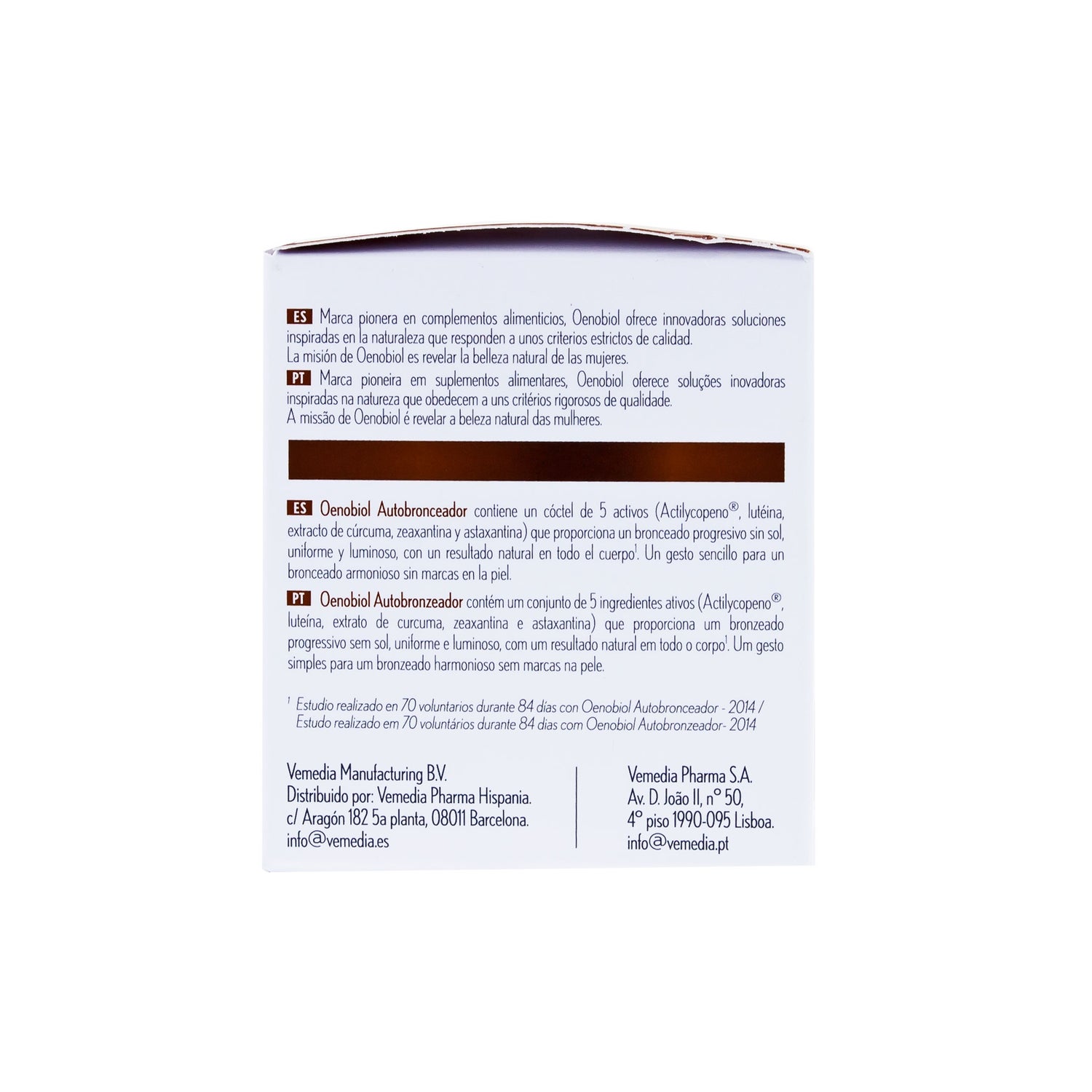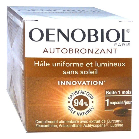 Oenobiol Autobronzant est un complément alimentaire riche en actifs végétaux qui aide à obtenir un bronzage progressif et naturel. Ce produit comprend 2 boîtes de 30 capsules et 1 boîte de 30 capsules en cadeau.