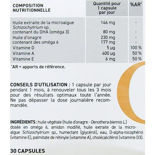 Oenobiol Derma Expert Omega 3 et 6 30caps est un complément alimentaire conçu pour nourrir et régénérer la peau de l'intérieur, en renforçant son éclat naturel. Ce produit est enrichi en acides gras essentiels omega 3 et 6, ce qui en fait une option idéale pour :