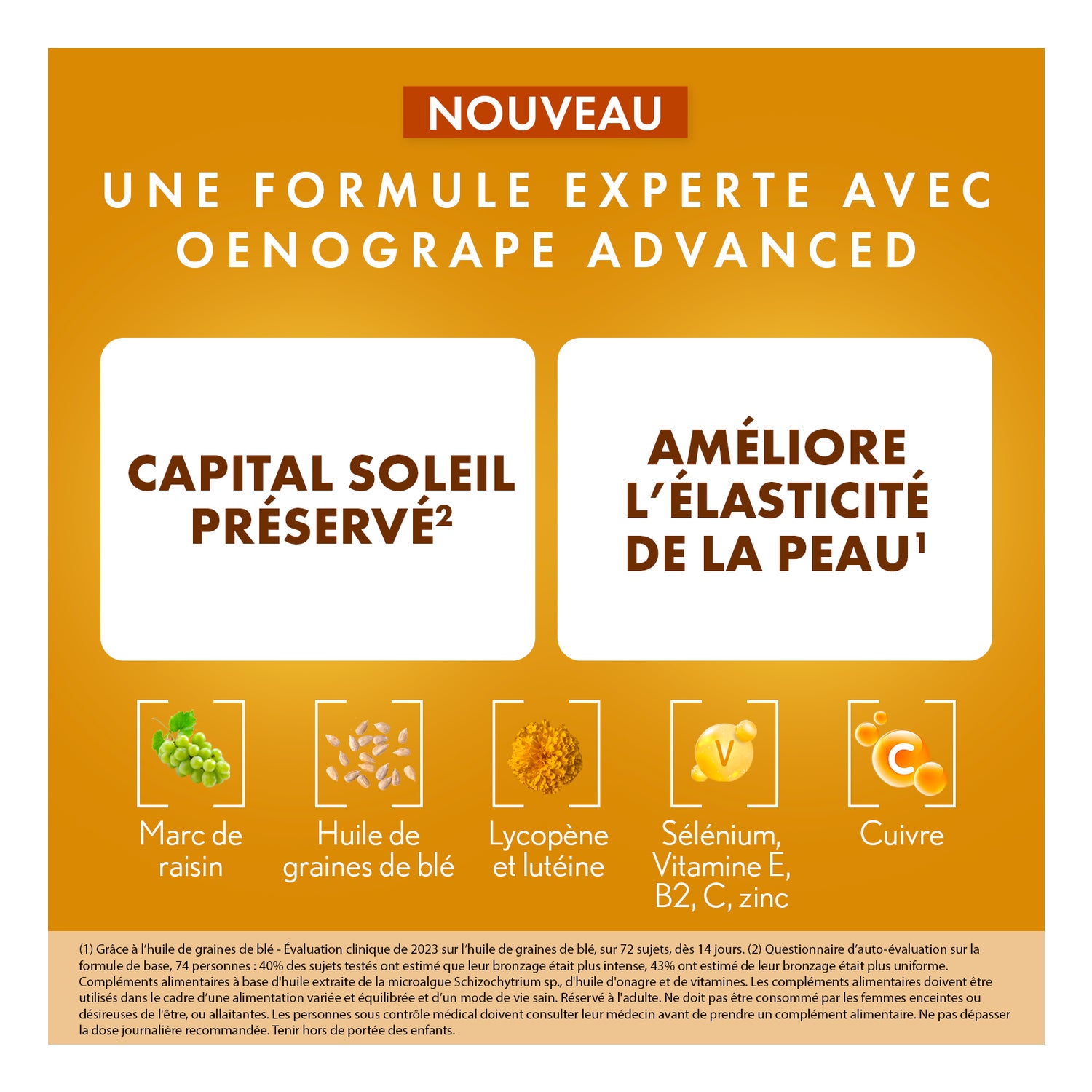 un hâle intense et durable favorisé par le lycopène et la lutéine,