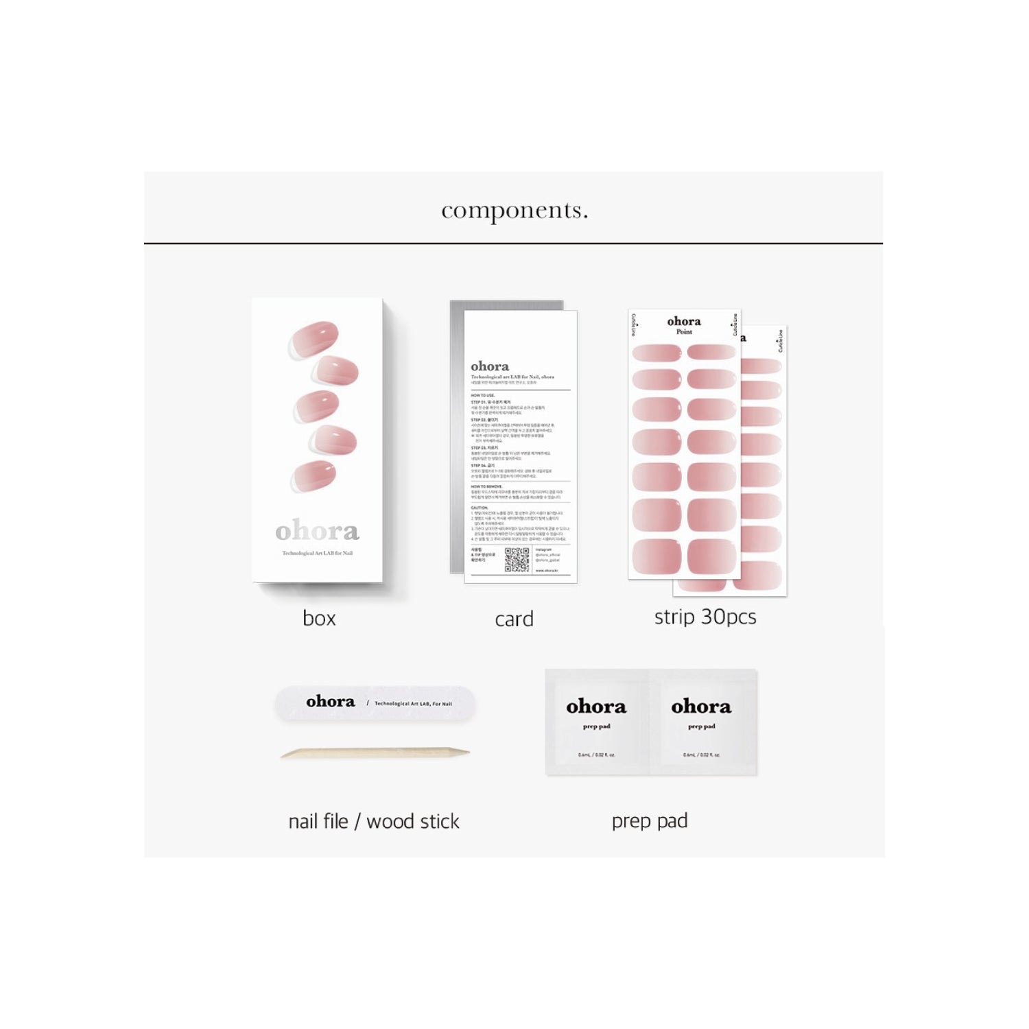 Ohora Gel Nail Strips N Milk Rose 30uds sont des bandes de gel. Tu n'as pas le temps d'aller te faire manucurer au salon ? Ces bandes de vernis à ongles en gel sont faciles à utiliser, limer, sécher et enlever ; elles ont révolutionné le soin des ongles en Corée. Le gel "semi-cured" d'Ohora est une technologie innovante, complètement différente du vernis à gel traditionnel. Il s'agit de bandes d'ongles en gel souple et élastique, conçues pour s'adapter à toutes les tailles d'ongles, offrant un résultat de manucure en gel de qualité salon. Chaque pack contient 30 pièces en 15 tailles différentes, permettant de réaliser deux manucures avec un même pack. Son design courbé en forme de C permet aux bandes d'atteindre les bords des ongles pour fournir l'adhésion la plus forte. Chaque bande d'ongle a une triple couche : un gel de base, le gel de couleur et le gel supérieur, qui agit comme une couche protectrice pour aider la manucure à durer jusqu'à 14 jours. De plus, chaque pack contient également 2 lingettes pour préparer et nettoyer les ongles avant de commencer le processus, 1 lime à ongles pour adapter la taille et 1 bâtonnet en bois qui aide à avoir une plus grande précision dans le placement.