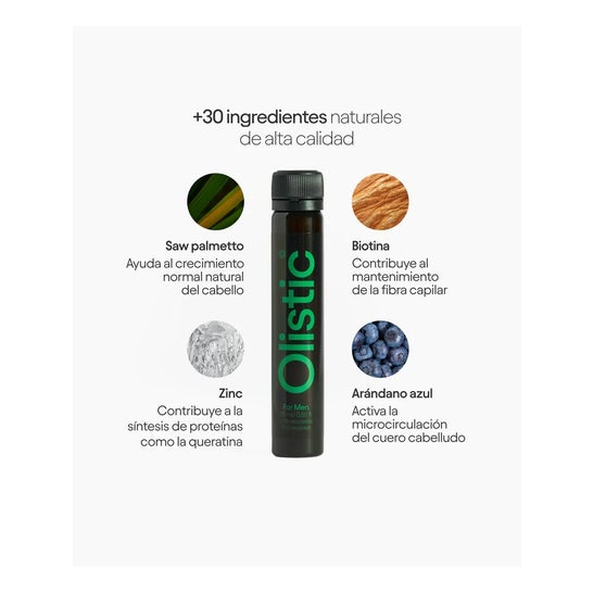 Olistic For Men 28uds est un traitement buvable naturel pour renforcer les cheveux, améliorer l'épaisseur et la santé capillaire, favoriser la croissance et diminuer la chute.