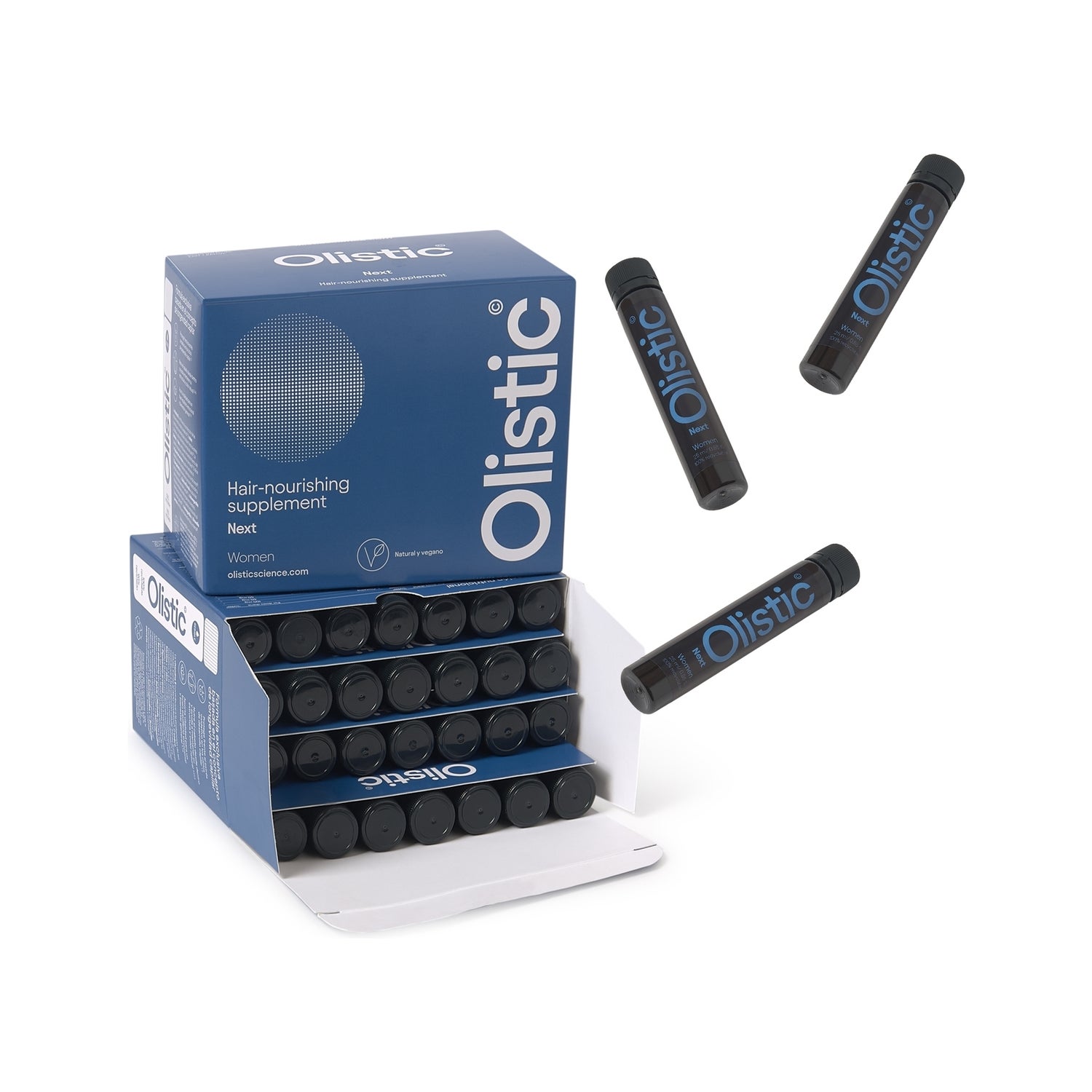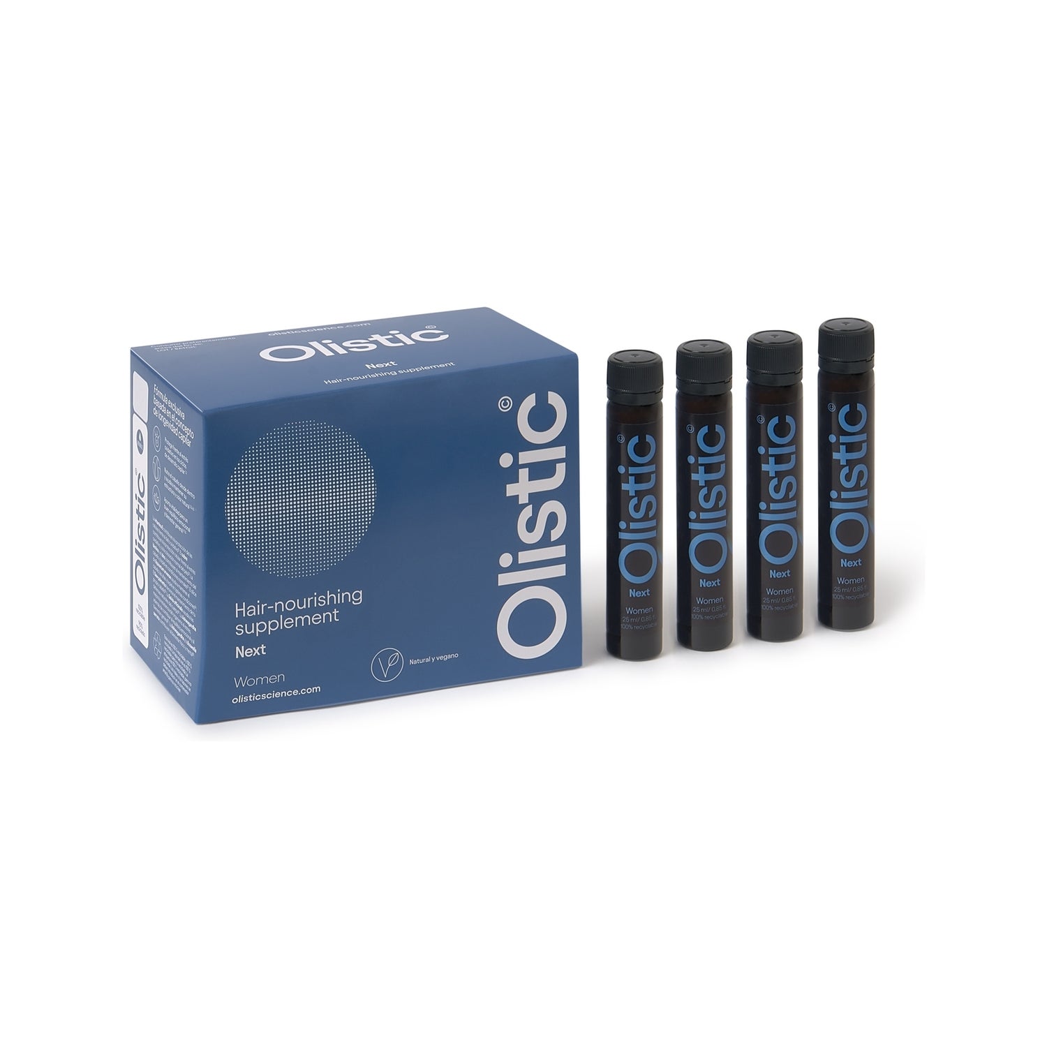 Olistic Pack Next Women Hair Nourishing Supplement 2x 28und est un complément alimentaire à boire, conçu pour le soin capillaire des femmes à partir de 50 ans.