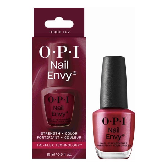 Opi Nail Envy Nail Strengthener Tough Luv 15ml est un durcisseur d'ongles dans une attrayante teinte rouge perle foncé. Ce produit est formulé avec la technologie innovante Tri-Flex™, conçue pour durcir et protéger les ongles contre des problèmes tels que :