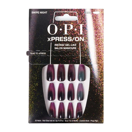 Opi xPRESS/ON Kit Ongles Postiches Long Swipe Night offre un résultat professionnel, durable et respectueux de l'environnement.