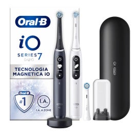 Brosse à dents électrique Oral-B iO 7 Duo noire et blanche 2 unités se distingue par offrir une expérience de brossage exceptionnelle. Ce produit ne représente pas seulement une avancée technologique, mais il intègre également une ingénierie de premier niveau, garantissant un nettoyage plus complet, doux et silencieux.