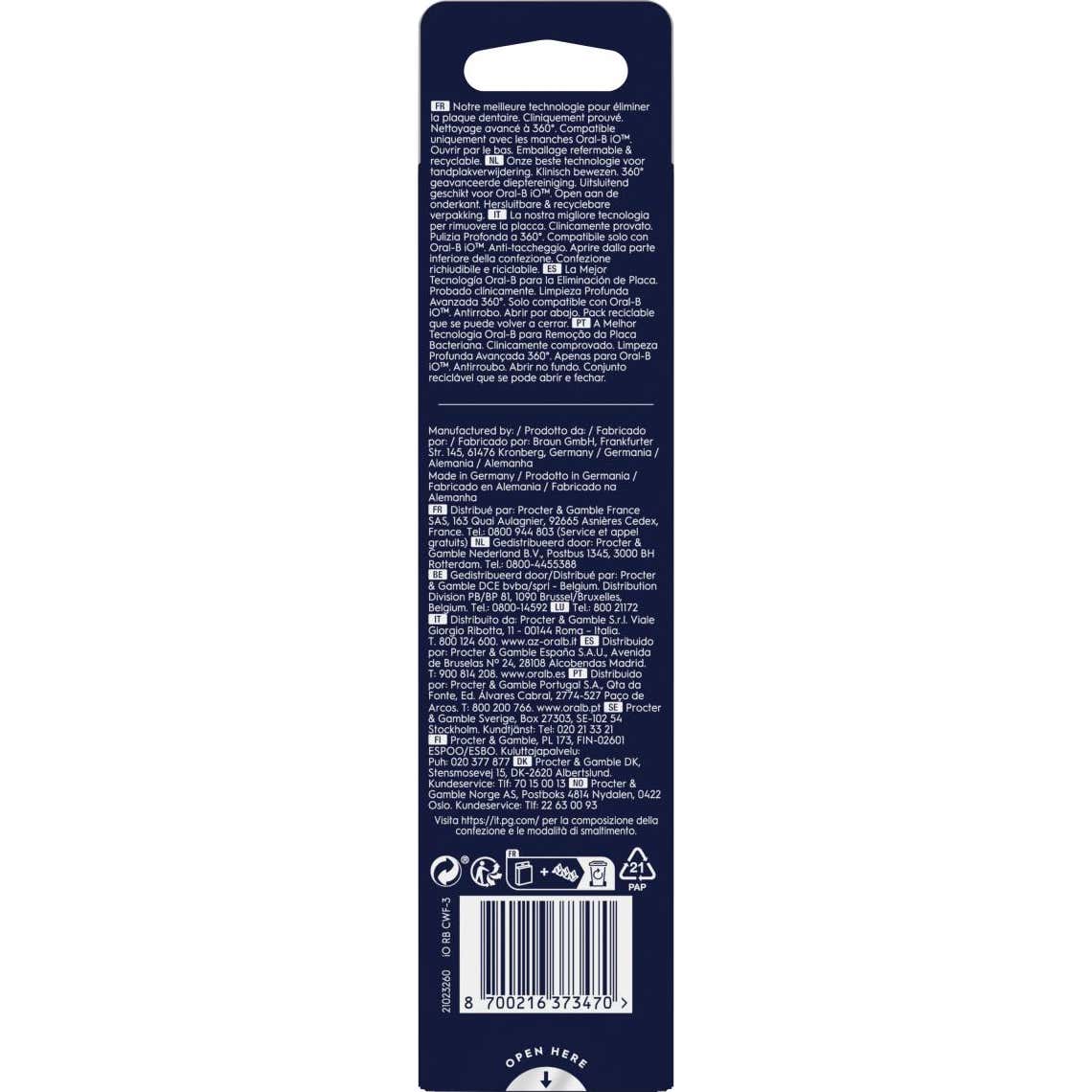 Ces têtes sont exclusivement compatibles avec les brosses à dents électriques Oral-B iO. Chaque paquet comprend trois têtes, ce qui permet de maintenir une hygiène bucco-dentaire optimale pendant plusieurs mois. Il est recommandé de changer la tête tous les trois mois ou dès que les filaments changent de couleur, pour assurer leur efficacité maximale.
