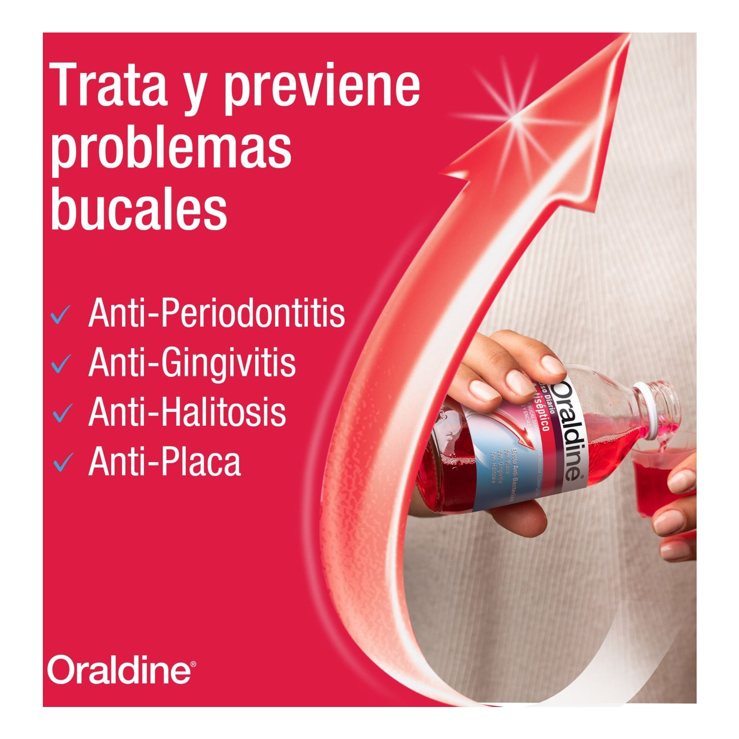 Combat la plaque bactérienne et les caries avec le bain de bouche efficace d'Oraldine, un rince-bouche antiseptique qui ne passera pas inaperçu dans ta bouche.