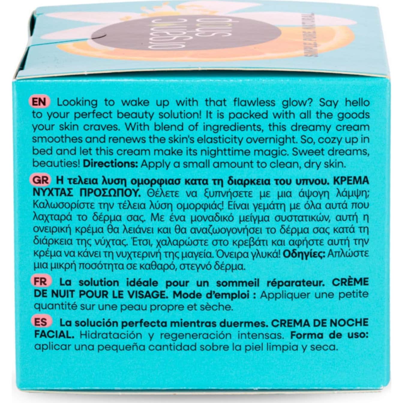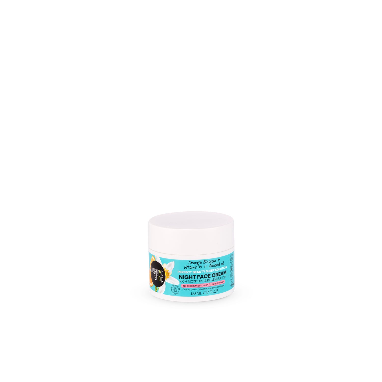 Organic Shop Perfect Beauty Sleep Solution Crème de Nuit Visage 50ml est une crème hydratante et régénérante conçue pour être utilisée pendant la nuit. Cette crème a pour objectif de fournir un éclat radieux au réveil, grâce à sa formule riche en ingrédients qui favorisent la douceur et l'élasticité de la peau.
